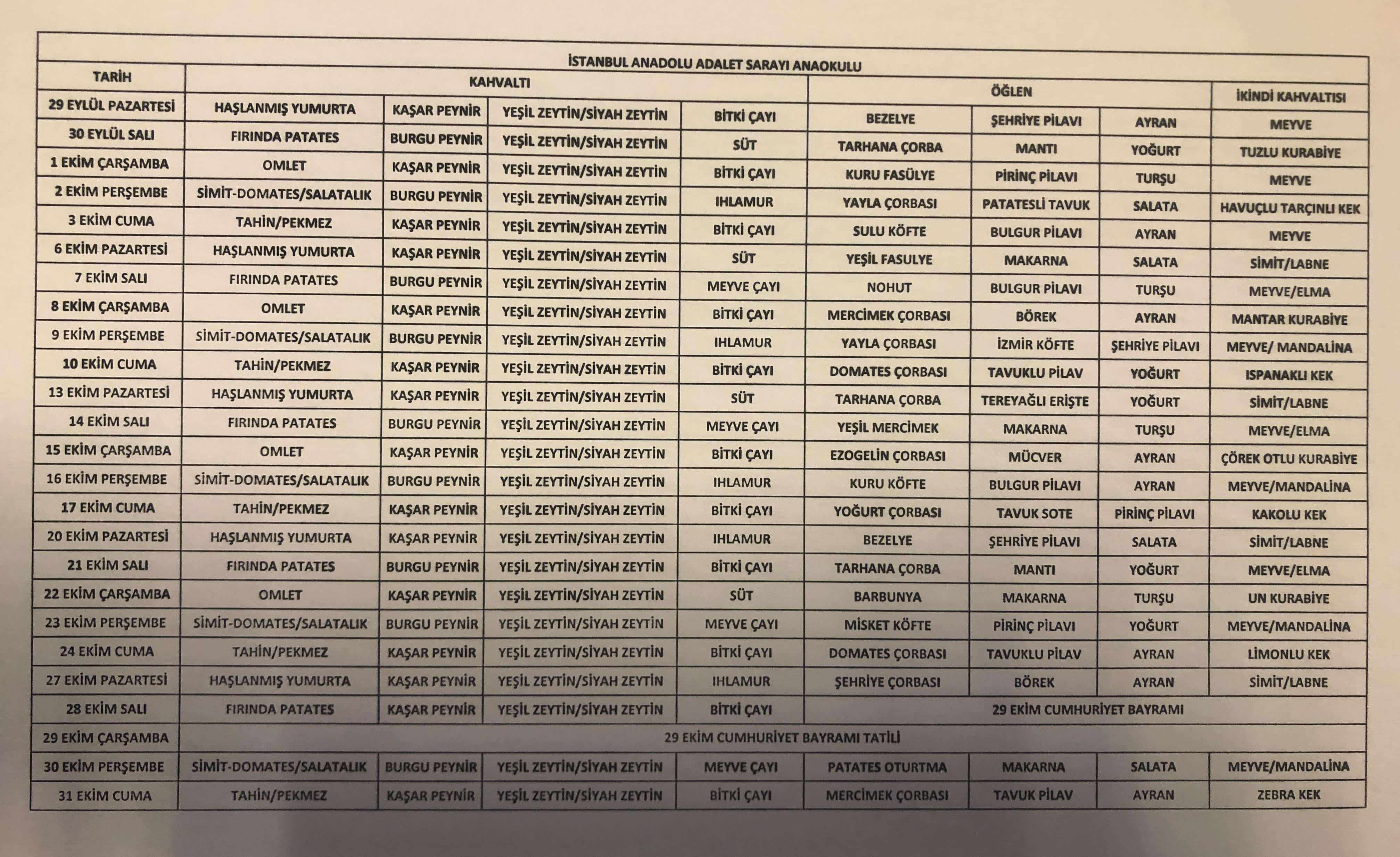 Ekim Ayı Yemek Menüsünü Görmek İçin Tıklayınız...